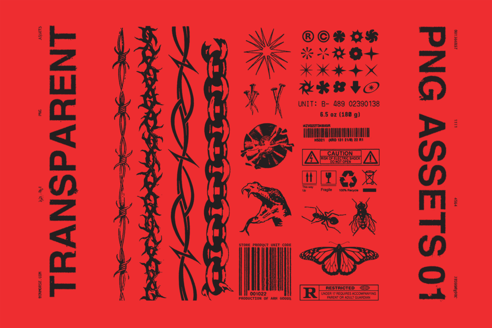 Curated and scanned images and shapes for your next design project. They’re all fully transparent png’s ready to be coloured, overlaid and used how ever you need.